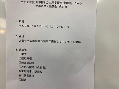 令和2年度「障害者の生涯学習支援活動」に係る文部科学大臣表彰(2020/12/08)
